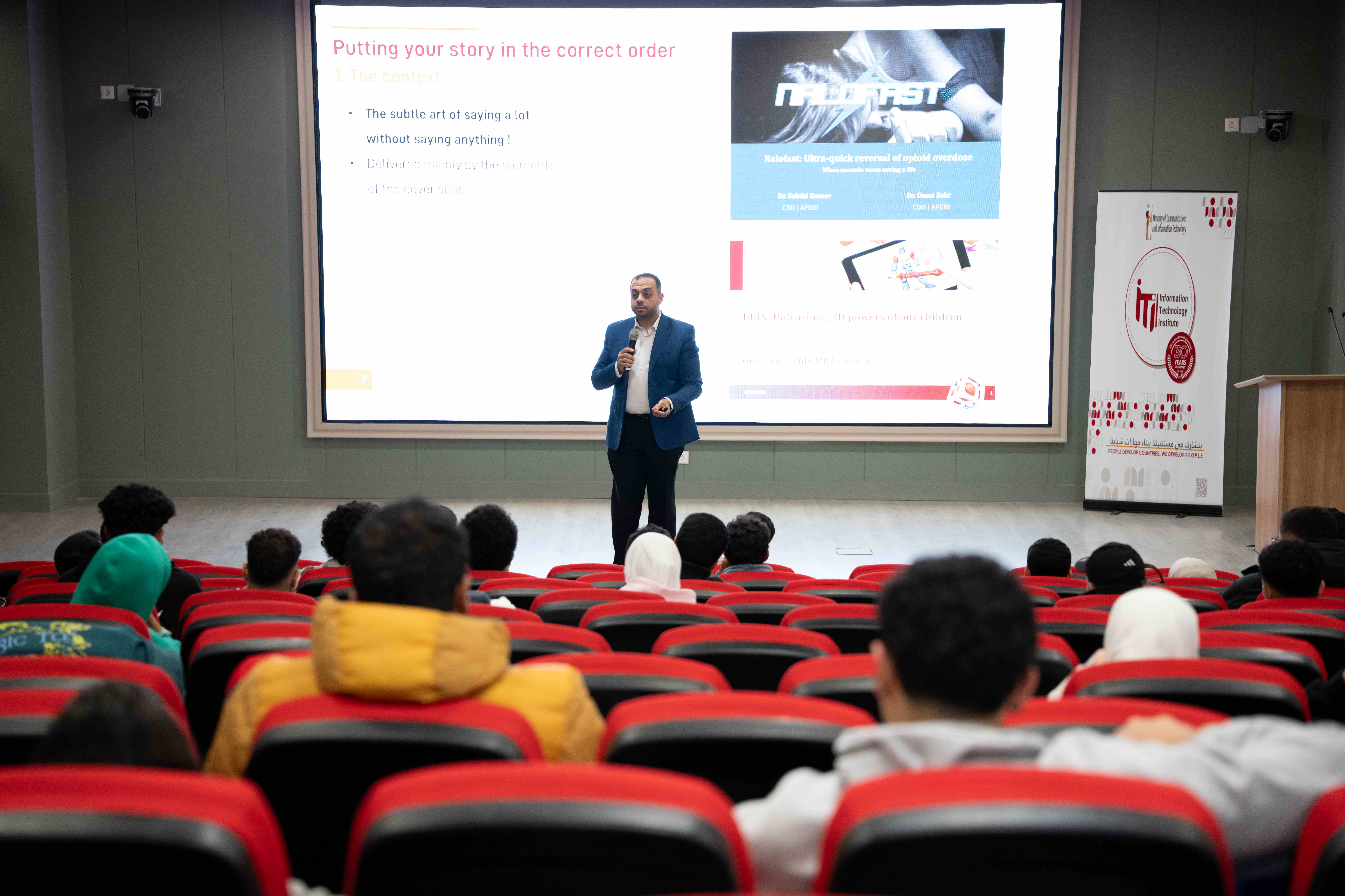 The Faculties of Computing & Information Sciences and Business Informatics hosted a special session featuring Dr. Omar Sakr, Founder and CEO of Nawah Scientific. Dr. Sakr delivered an engaging talk titled “Pitch to Raise: The Art and Science Behind a Successful Investor Pitch,” offering students valuable insights into the strategies, structure, and mindset needed to secure investment.