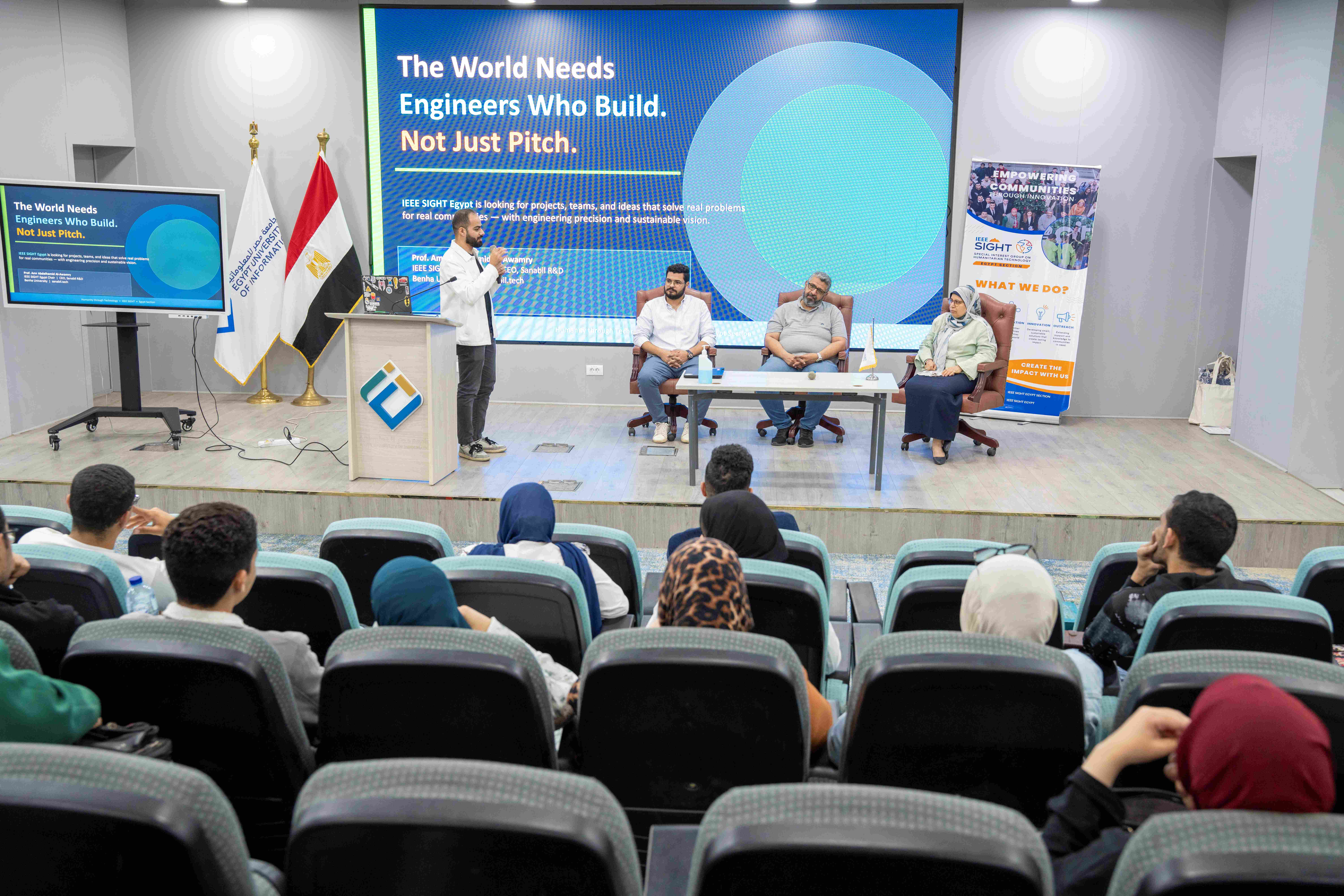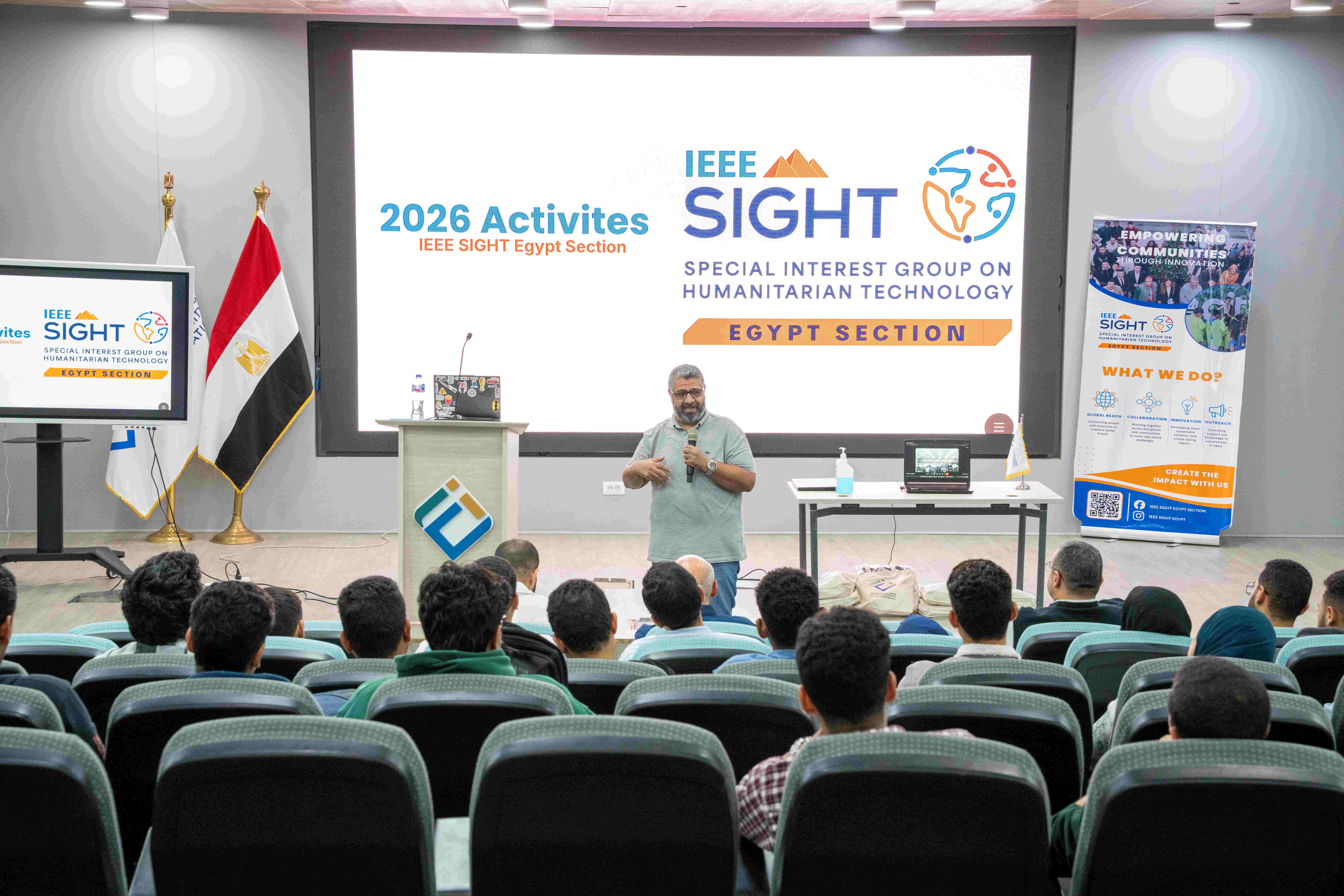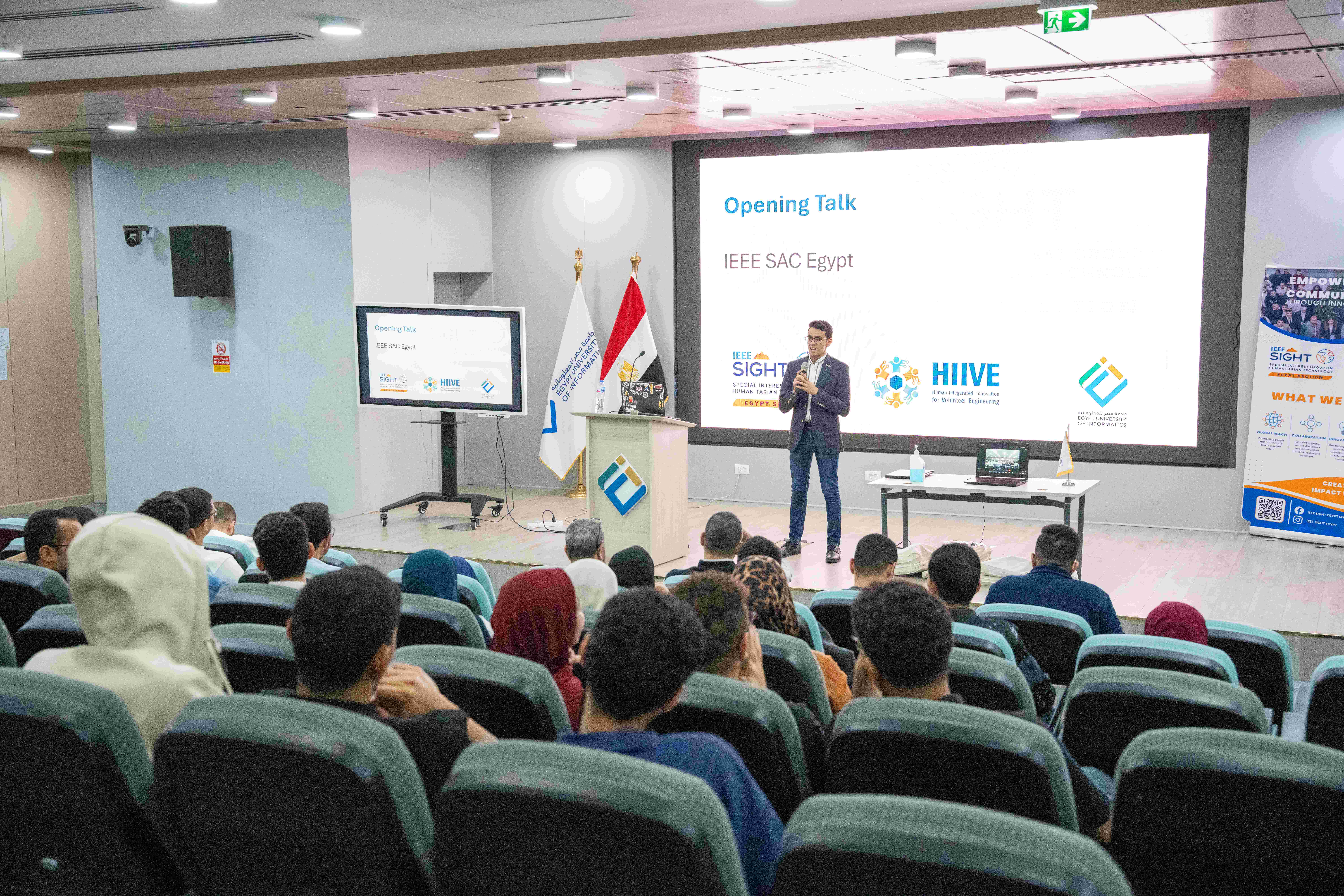 IEEE Student Branch recently hosted IEEE SIGHT Day alongside the closing ceremony of Phase 1 of the IEEE HIIVE Program, in an event organized by IEEE SIGHT Egypt. The gathering brought together over 100 attendees from across Egypt, fostering meaningful dialogue around humanitarian technology, entrepreneurship, and the diverse opportunities available within the IEEE community.
