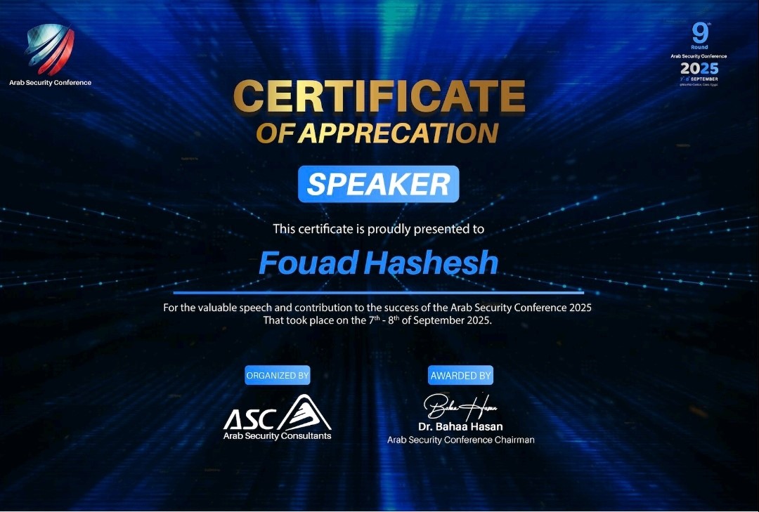 Our Engineering Student Fouad Hasheesh Speaks at the Arab Security Conference 2025