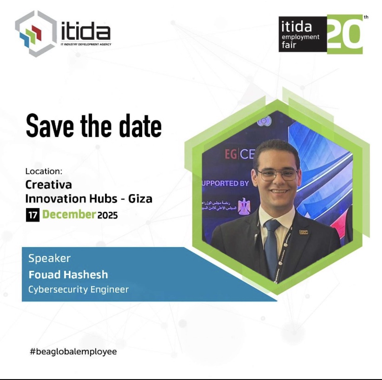 Fouad Hashish, a student at the Faculty of Computing and Information Sciences, was invited to participate as a speaker at the Information Technology Industry Development Agency (ITIDA) Employment Fair—20th Round, held under the auspices of the Ministry of Communications and Information Technology (MCIT), Egypt.